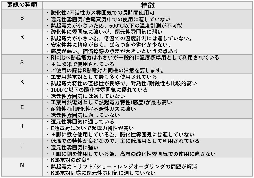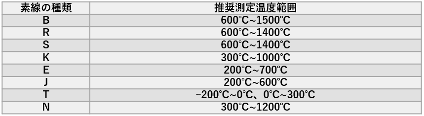 - 主にB・R・Kタイプと高温の温度測定に用いられる