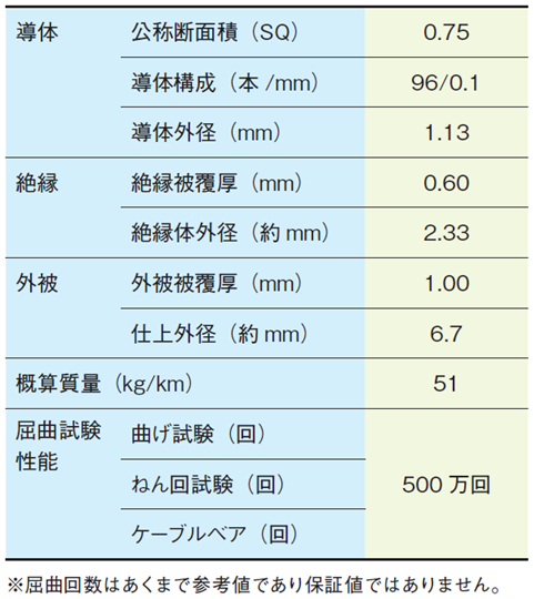 柔軟性に優れており射出成形機やロボット等の可動部の配線にお薦めします。